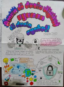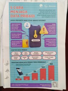 Melalui pesan edukatif dalam poster, peserta didik diajak untuk menerapkan strategi keamanan digital yang sederhana namun sangat efektif, seperti tidak memberikan data sensitif kepada orang lain, menggunakan kata sandi yang kuat, memperbarui perangkat dan software secara rutin, serta selalu berhati-hati terhadap tautan atau pesan mencurigakan. Langkah-langkah ini bukan hanya melindungi identitas digital, tetapi juga menunjukkan tanggung jawab dalam menjaga kerahasiaan informasi pribadi.