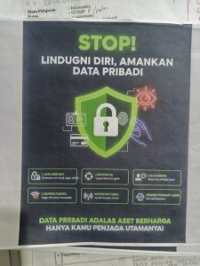Poster “STOP! Lindungi Diri, Amankan Data Pribadi” memberikan peringatan penting tentang perlunya menjaga keamanan informasi pribadi di dunia digital. Dalam poster ini dijelaskan berbagai langkah pencegahan, seperti menggunakan kata sandi yang kuat, berhati-hati terhadap pesan mencurigakan, tidak sembarangan membagikan data di media sosial, serta menghindari penggunaan Wi-Fi publik untuk aktivitas sensitif. Poster ini menekan-kan bahwa data pribadi adalah aset berharga, dan setiap individu harus menjadi penjaga utama yang memastikan informasi mereka tetap aman dari risiko penyalahgunaan atau kejahatan siber.